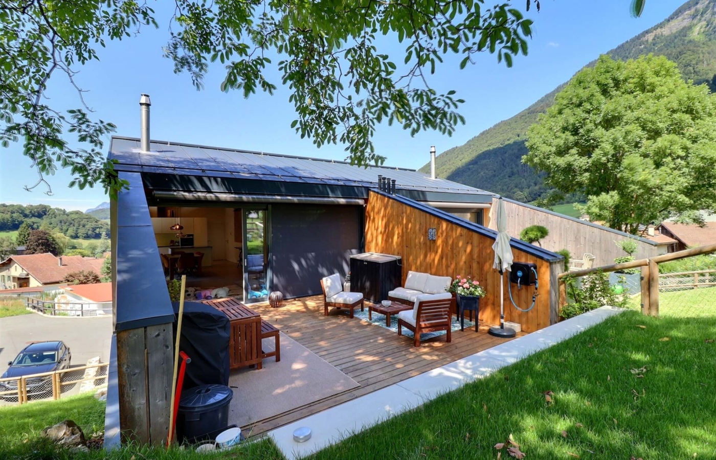 Implantée dans un environnement serein, cette maison de 5.5 pièces incarne l’équilibre parfait entre esthétisme et praticité, tout en adoptant une approche résolument écologique et écoé- nergétique grâce à son système de chauffage aux pellets et ses panneaux solaires.