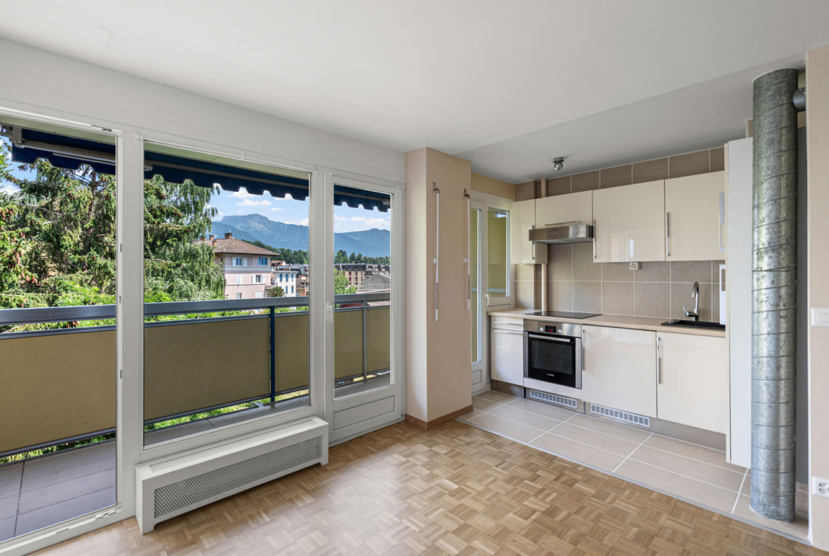 Récemment rénové, le balcon offre un espace extérieur idéal pour profiter des beaux jours. À l’intérieur, la pièce de vie bénéficie d’une belle lumière naturelle grâce à de grandes ouvertures, et comprend une cuisine fonctionnelle ouverte sur l’espace principal