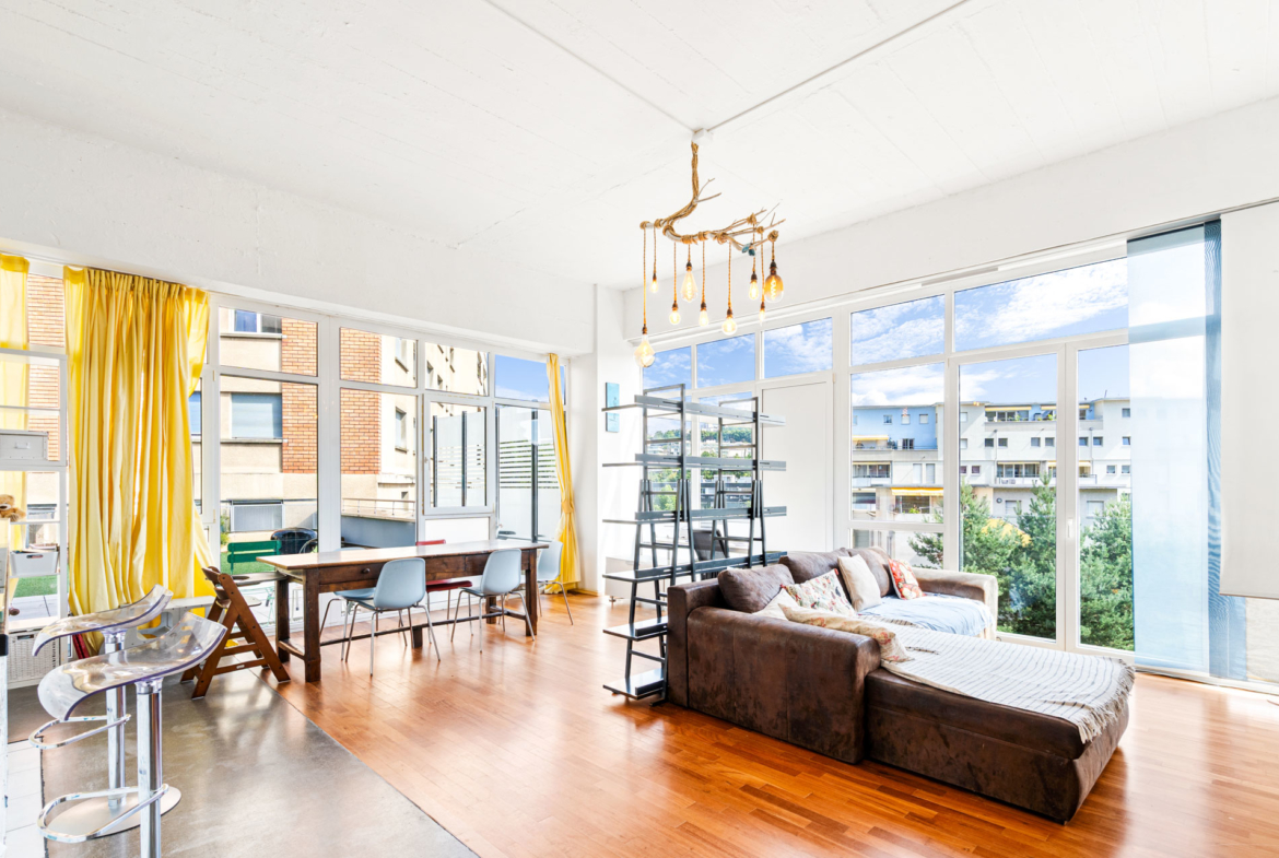 Ce superbe loft de 102 m2 habitables séduit par ses volumes généreux, sa luminosité naturelle et son design industriel chic. Situé dans une ancienne structure rénovée avec soin, il bénéficie d’une immense terrasse privative de 120 m2, rare en ville, idéale pour recevoir ou profiter des beaux jours en toute intimité.