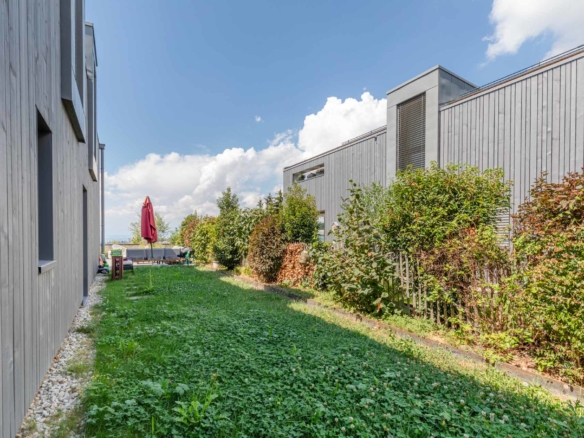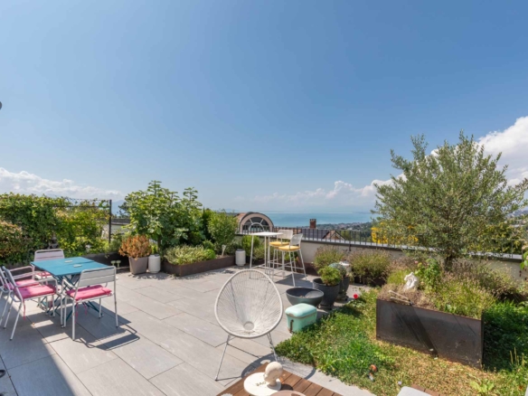 Les grandes baies vitrées vous invitent à admirer la magnifique vue sur le Lac et les montagnes et donnent accès à la grande terrasse ainsi qu’au jardin.