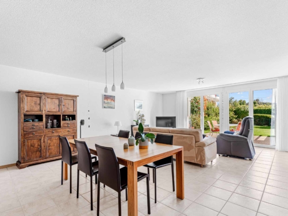 Un garage-box fermé (CHF 30’000.- en sus) ainsi qu’une place de parc extérieure (CHF 20’000.- en sus) complètent agréablement ce bien.