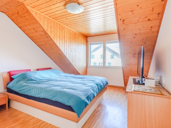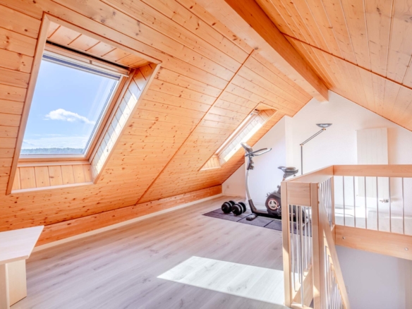 Aux combles, les propriétaires ont aménagé une pièce pouvant servir de bureau, chambre ou salle de loisir.