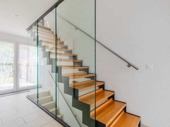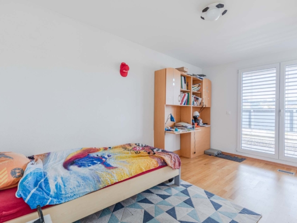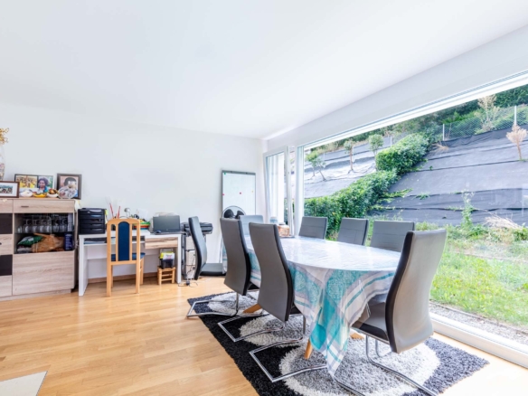 Bénéficiant du label « Minergie », cette maison offre tout le confort moderne tout en respectant les normes écologiques. Elle profite de grands espaces de vie, de grandes baies vitrées, d’espaces extérieurs (balcon, terrasse, jardin) et de nombreux espaces utiles.