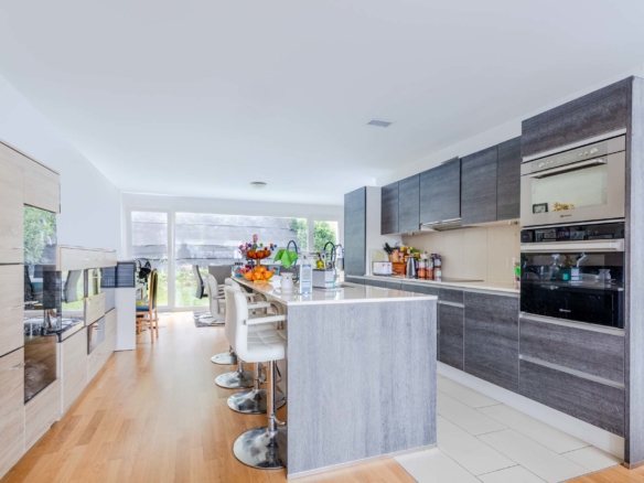 Elle se compose d’un grand séjour lumineux donnant accès un balcon, d’une cuisine entièrement équipée avec îlot central, un espace salle à manger donnant accès à la terrasse et au jardin, une chambre parentale avec salle de douche, trois chambres, une salle de bains, WC visiteurs, et divers espaces au rez-inférieur.