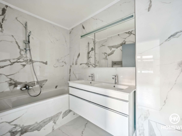 Son espace jour dispose d’une cuisine agencée haut de gamme ainsi qu’un magnifique salon salle à manger. L’appartement compte 3 chambres dont une avec salle de bains privative.