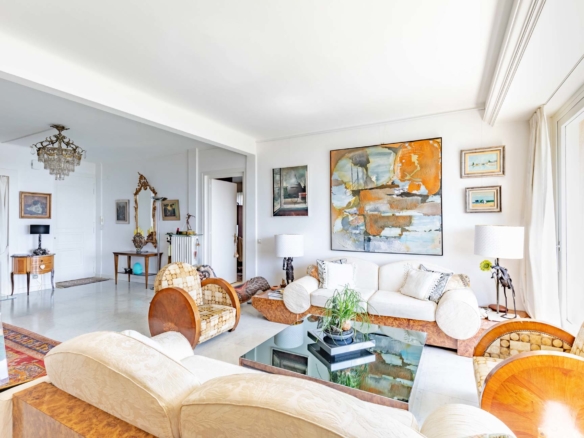 À l’intérieur, les matériaux de qualité, notamment le sol en marbre blanc et la cuisine en acajou avec son réduit, ajoutent une touche de raffinement à l’espace. L’appartement, très bien entretenu, bénéficie de hauts plafonds dans l’ensemble des pièces, offrant ainsi une atmosphère lumineuse et spacieuse.