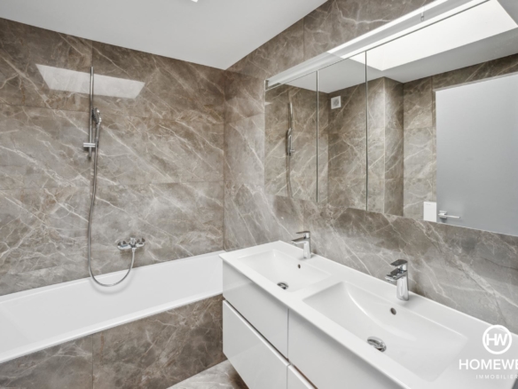 Une place de parc intérieure, deux caves ainsi qu’un accès direct au lac, ponton privé viennent compléter ce bien.