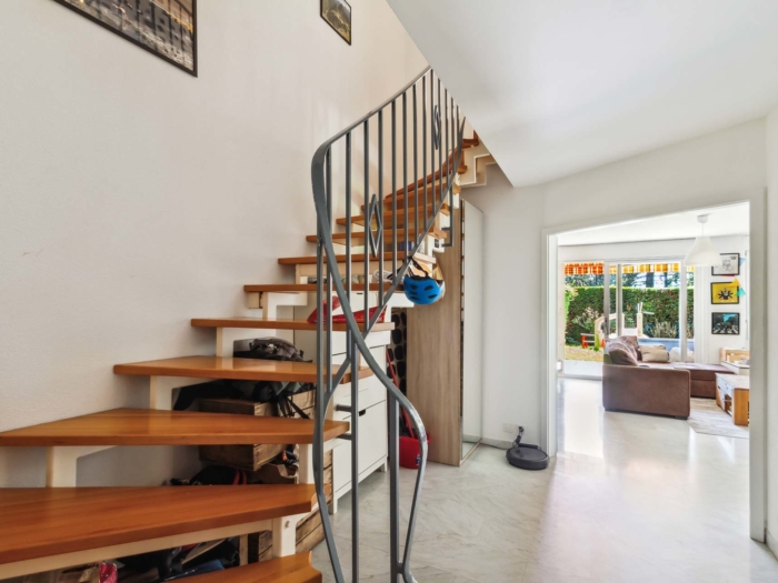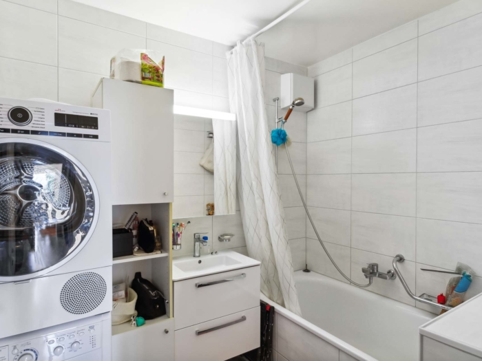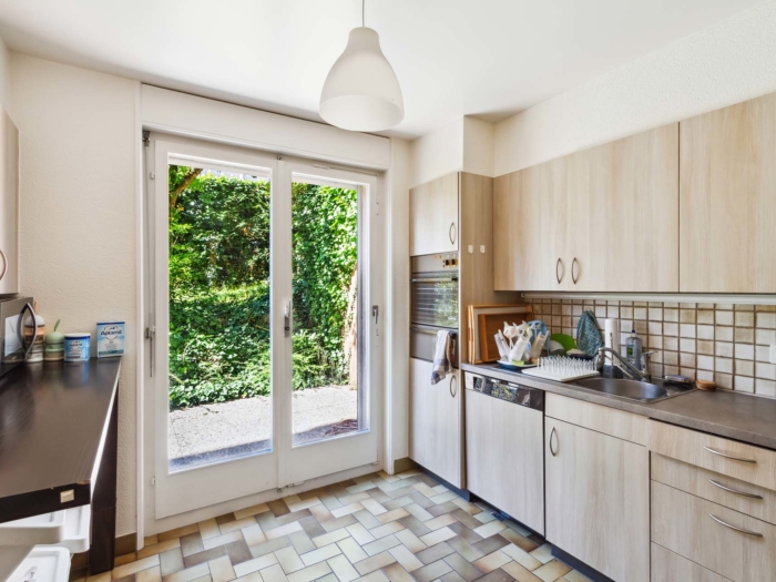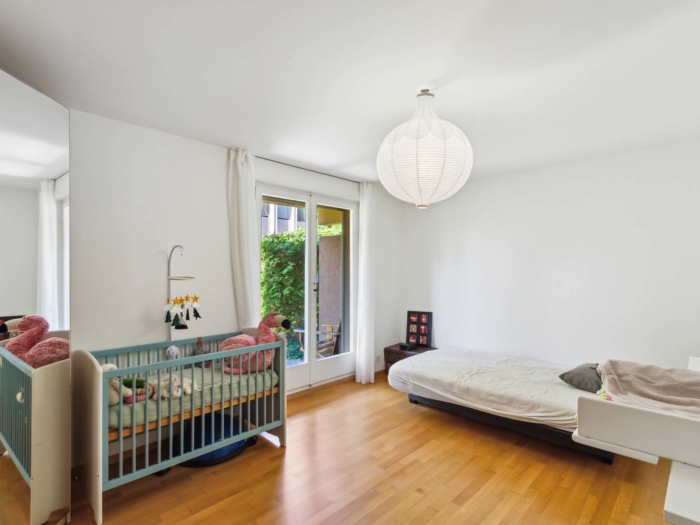 Toutes les pièces du rez-de-chaussée bénéficient de l’accès à un charmant jardin d’env. 200 m2, permettant de profiter des belles journées estivales ainsi que de la période hivernale. La chambre à l’étage supérieur dispose également d’un espace extérieur avec son balcon privé.