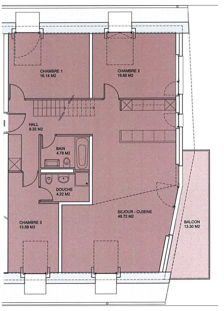 L’appartement offre une distribution fluide et bien pensée, avec un vaste séjour et cuisine ouverte d’environ 49 m² donnant accès à un balcon généreux. La partie nuit se compose de trois chambres confortables et de deux espaces sanitaires distincts, assurant un excellent confort au quotidien. Les volumes équilibrés et la séparation claire entre les espaces de jour et de nuit confèrent à ce bien une qualité de vie agréable et fonctionnelle